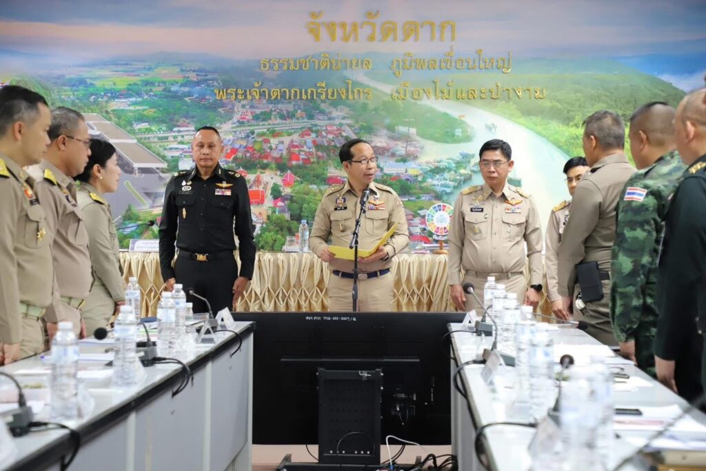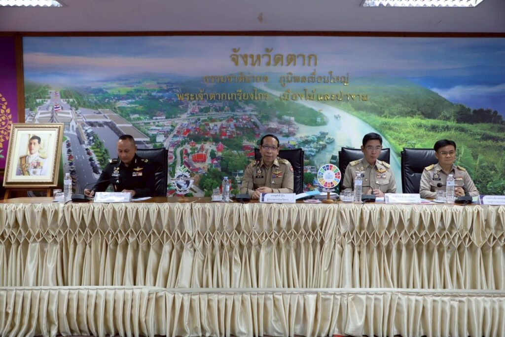 จากนั้น ที่ประชุมรับทราบการขับเคลื่อนนโยบายรัฐบาล และวาระสำคัญของจังหวัดตาก เช่น ความก้าวหน้าการดำเนินการศูนย์พัฒนาโครงการหลวงเลอตอ รายงานสภาพภูมิอากาศ รวมถึงสถานการณ์น้ำ รายงานสรุปผลการใช้จ่ายงบประมาณ ประจำปี พ.ศ. 2569 การจำหน่ายสลากกาชาดการกุศลฯ โครงการแสงนำใจไทยทั้งชาติ เดิน วิ่ง ปั่น ป้องกันอัมพาต ครั้งที่ 11 เฉลิมพระเกียรติ โครงการ TO BE NUMBER ONE ตามลำดับ