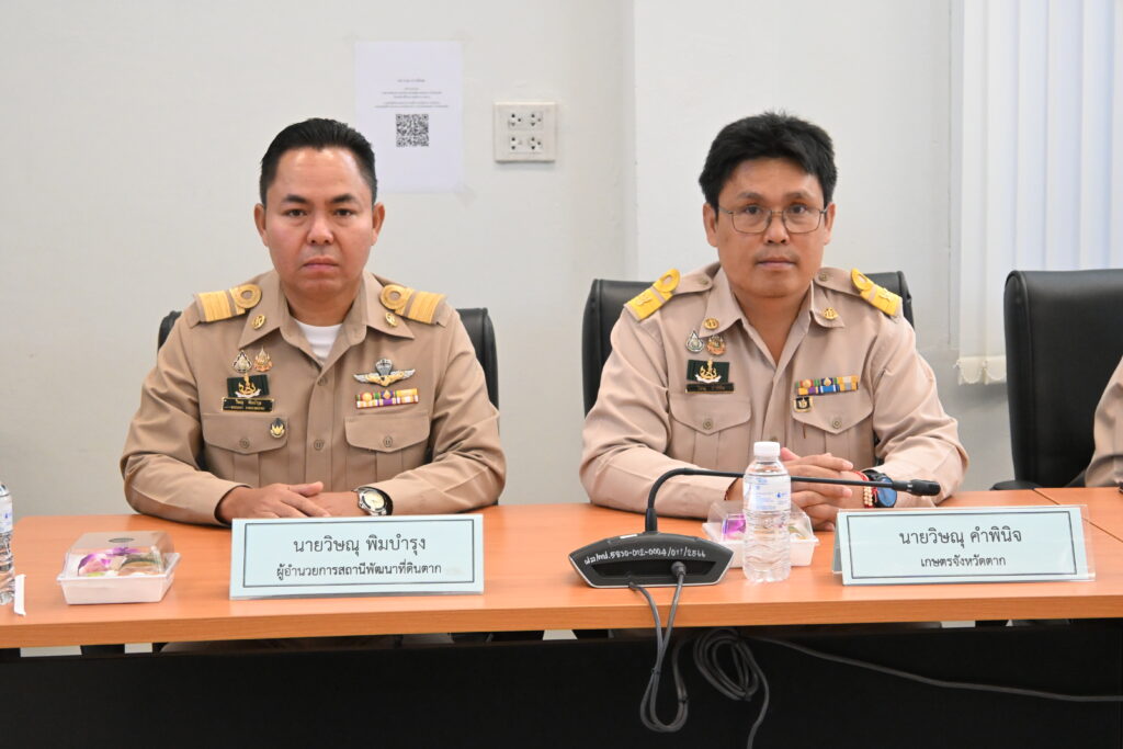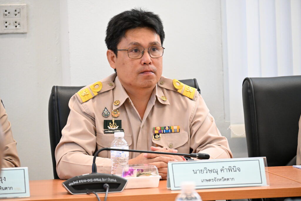 วันที่ 27 พฤศจิกายน 2568 เวลา 09.30 น. นายวิษณุ คำพินิจ เกษตรจังหวัดตาก ร่วมให้การต้อนรับ พลอากาศเอก ชลิต พุกผาสุข องคมนตรี ประธานกรรมการที่ปรึกษาผู้ทรงคุณวุฒิฝนหลวง ลงพื้นที่ตรวจติดตามการดำเนินงานโครงการจัดหาชุดเครื่องผลิตสารฝนหลวงสูตร 3 (น้ำแข็งแห้ง) พร้อมติดตั้ง ตามโครงการพระราชดำริ และการดำเนินการปรับปรุงสนามบินตาก ณ ศูนย์ปฏิบัติการฝนหลวงภาคเหนือ จ.ตาก และศูนย์ปฏิบัติการฝนหลวงภาคเหนือตอนล่าง จ.พิษณุโลก พร้อมด้วย นายราเชน ศิลปะรายะ อธิบดีกรมฝนหลวงและการบินเกษตร โดยมี นายชูศักดิ์ รู้ยิ่ง ผู้ว่าราชการจังหวัดตาก กล่าวให้การต้อนรับ