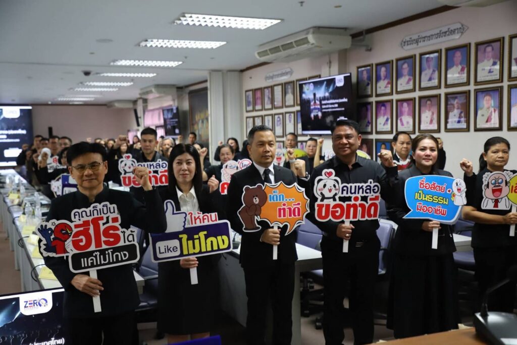 วันที่ 9 ธันวาคม 2568 นายวิษณุ คำพินิจ เกษตรจังหวัดตาก พร้อมด้วย นายพันธุ์เสน่ห์ เปรมสัย หัวหน้ากลุ่มยุทธศาสตร์และสารสนเทศ นางฤทัย อ้นเกตุ หัวหน้ากลุ่มส่งเสริมและพัฒนาการผลิต พร้อมด้วยเจ้าหน้าที่กลุ่มส่งเสริมและพัฒนาการผลิต เข้าร่วมงานวันต่อต้านคอร์รัปขันสากล (ประเทศไทย) ภายใต้แนวคิด “HERO OF THE TRUTH ร่วมหยุดคอร์รัปชัน” ผ่านการรับชมการถ่ายทอดสดจากอาคารศูนย์การประชุมอิมแพ็ค เมืองทองธานี จังหวัดนนทบุรี โดยมี นายประเดิม เดชายนต์บัญชา รองผู้ว่าราชการจังหวัดตาก เป็นประธาน ณ ห้องประชุมตากสินมหาราช ชั้น 5 ศาลากลางจังหวัดตาก อำเภอเมืองตาก จังหวัดตาก