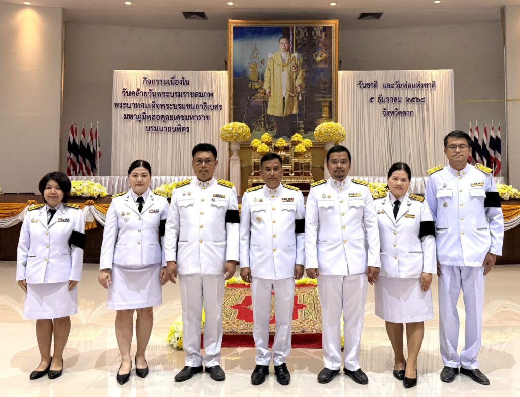 วันที่ 5 ธันวาคม 2568 เวลา 07.30 น. นายวิษณุ คำพินิจ เกษตรจังหวัดตาก พร้อมด้วย เจ้าหน้าที่กลุ่มส่งเสริมและพัฒนาเกษตรกร เข้าร่วมพิธีเจริญพระพุทธมนต์และทำบุญตักบาตรถวายพระราชกุศล และพิธีวางพานพุ่มดอกไม้ถวายบังคม เนื่องในวันคล้ายวันพระบรมราชสมภพ พระบาทสมเด็จพระบรมชนกาธิเบศร มหาภูมิพลอดุลยเดชมหาราช บรมนาถบพิตร วันชาติและวันพ่อแห่งชาติ 5 ธันวาคม 2568 ณ อาคารหอประชุมศาลากลางจังหวัดตาก โดยมี นายชูศักดิ์ รู้ยิ่ง ผู้ว่าราชการจังหวัดตาก เป็นประธานในพิธี