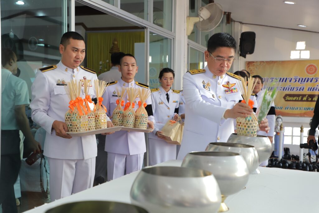 วันที่ 7 ธันวาคม 2568 เวลา 07.30 น. นายวิษณุ คำพินิจ เกษตรจังหวัดตาก มอบหมายให้ นายปพนธนัย ยองจา นักวิชาการส่งเสริมการเกษตรชำนาญการ กลุ่มอารักขาพืช เข้าร่วมพิธีเจริญพระพุทธมนต์และทำบุญตักบาตร กิจกรรมเฉลิมพระเกียรติสมเด็จพระเจ้าลูกเธอ เจ้าฟ้าพัชรกิติยาภา นเรนทิราเทพยวดี กรมหลวงราชสาริณีสิริพัชร มหาวัชรราชธิดา เนื่องในโอกาสวันคล้ายวันประสูติ 7 ธันวาคม 2568 ณ ศาลาการเปรียญวัดไผ่ล้อม ตำบลระแหง อำเภอเมืองตาก จังหวัดตาก โดยมีนายสวนิต สุริยกุล ณ อยุธยา รองผู้ว่าราชการจังหวัดตาก เป็นประธาน พร้อมด้วย หน่วยงานที่เกี่ยวข้องเข้าร่วมกิจกรรม
