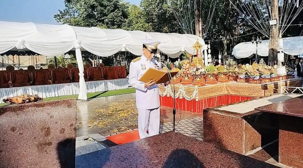 วันที่ 28 ธันวาคม 2568 นายวิษณุ คำพินิจ เกษตรจังหวัดตาก มอบหมายให้ นางนิตยา แก้วสุข หัวหน้ากลุ่มส่งเสริมและพัฒนาเกษตรกร และเจ้าหน้าที่กลุ่มส่งเสริมและพัฒนาเกษตรกร เข้าร่วมงานพิธีบวงสรวงดวงพระวิญญาณสมเด็จพระเจ้าตากสินมหาราช ณ มณฑลพิธีบริเวณศาลสมเด็จพระเจ้าตากสินมหาราช อำเภอเมืองตาก จังหวัดตาก โดยมี นายประเดิม เดชายนต์บัญชา รองผู้ว่าราชการจังหวัดตาก เป็นประธานพิธี พร้อมด้วย ศาล ทหาร ตำรวจ และหัวหน้าส่วนราชการ รวมไปถึงผู้แทนภาคประชาชนเข้าร่วมพิธีฯ