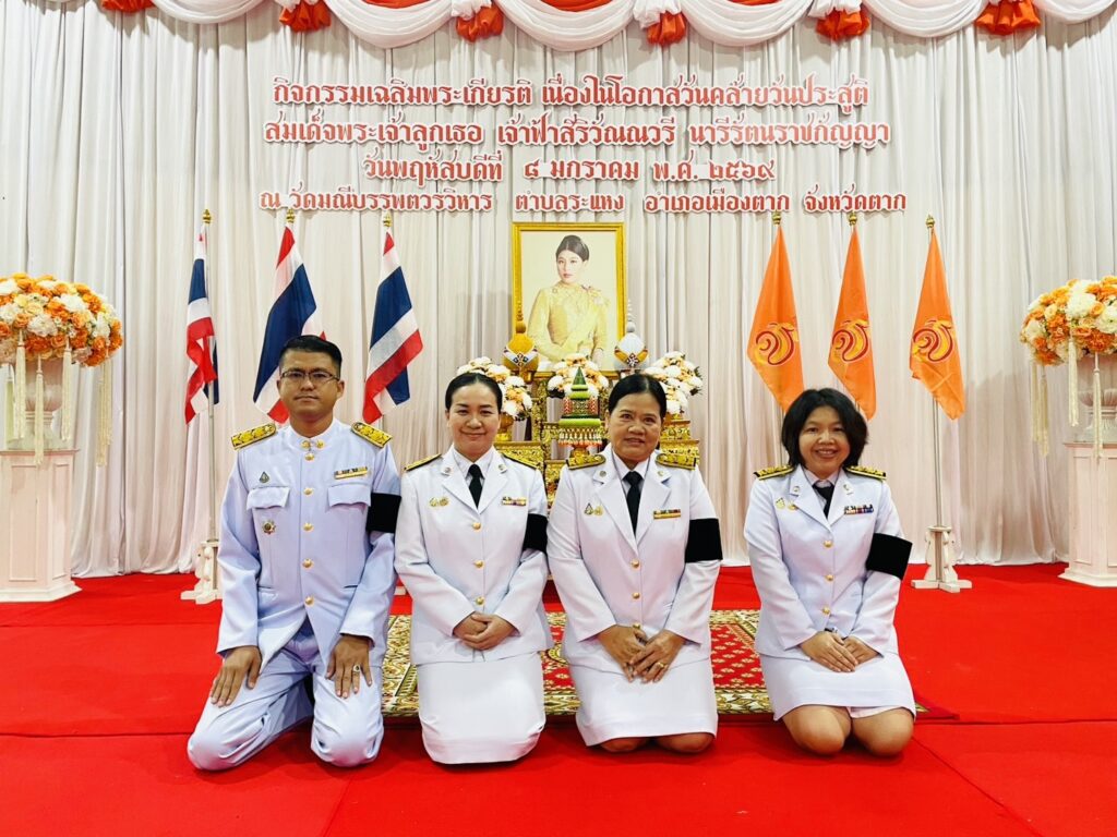 วันที่ 8 มกราคม 2569 นายวิษณุ คำพินิจ เกษตรจังหวัดตาก มอบหมายให้ นางนิตยา แก้วสุข หัวหน้ากลุ่มส่งเสริมและพัฒนาเกษตรกร และเจ้าหน้าที่กลุ่มส่งเสริมและพัฒนาเกษตรกร เข้าร่วมกิจกรรมเฉลิมพระเกียรติเนื่องในโอกาสวันคล้ายวันประสูติสมเด็จพระเจ้าลูกเธอ เจ้าฟ้าสิริวัณณวรี นารีรัตนราชกัญญาโดยมี นางสุนีย์ บุษพันธ์ รองผู้ว่าราชการจังหวัดตาก เป็นประธานพิธี พร้อมด้วย ศาล ทหาร ตำรวจ และหัวหน้าส่วนราชการ รวมไปถึงผู้แทนภาคประชาชนเข้าร่วมพิธีฯ