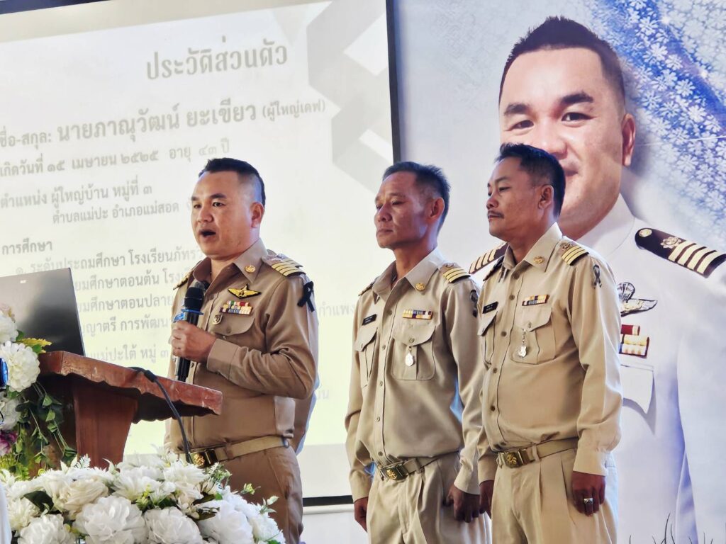 2. นายภาณุวัฒน์ ยะเขียว ผู้ใหญ่บ้านหมู่ 3 ตำบลแม่ปะ อำเภอม่สอด จังหวัดตาก