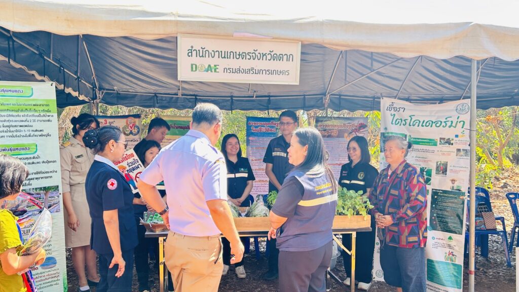 สำหรับกิจกรรมที่จัดในครั้งนี้ สำนักงานเกษตรจังหวัดตากจัดบูธการให้บริการสารชีวภัณฑ์ เชื้อราเมธาไรเซียม เมล็ดพันธุ์ผักสวนครัว กล้าผักสวนครัว และแหนแดง พร้อมทั้งประชาสัมพันธ์ รณรงค์หยุดเผาในพื้นที่การเกษตรให้กับประชาชนที่มาร่วมกิจกรรม กว่า 300 คน