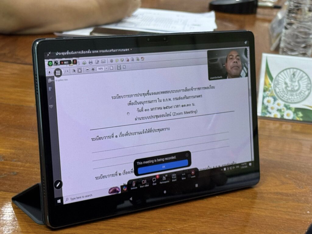 วันที่ 30 มกราคม 2569 เวลา 13.30 น. นายวิษณุ คำพินิจ เกษตรจังหวัดตาก เข้าร่วมประชุมทดสอบระบบคัดเลือก คณะอนุกรรมการพัฒนาการเกษตรและสหกรณ์จังหวัดตาก (อ.พ.ก.) กรมส่งเสริมการเกษตร ผ่านระบบออนไลน์ ณ ห้องประชุมพระพิรุณ สำนักงานเกษตรจังหวัดตาก