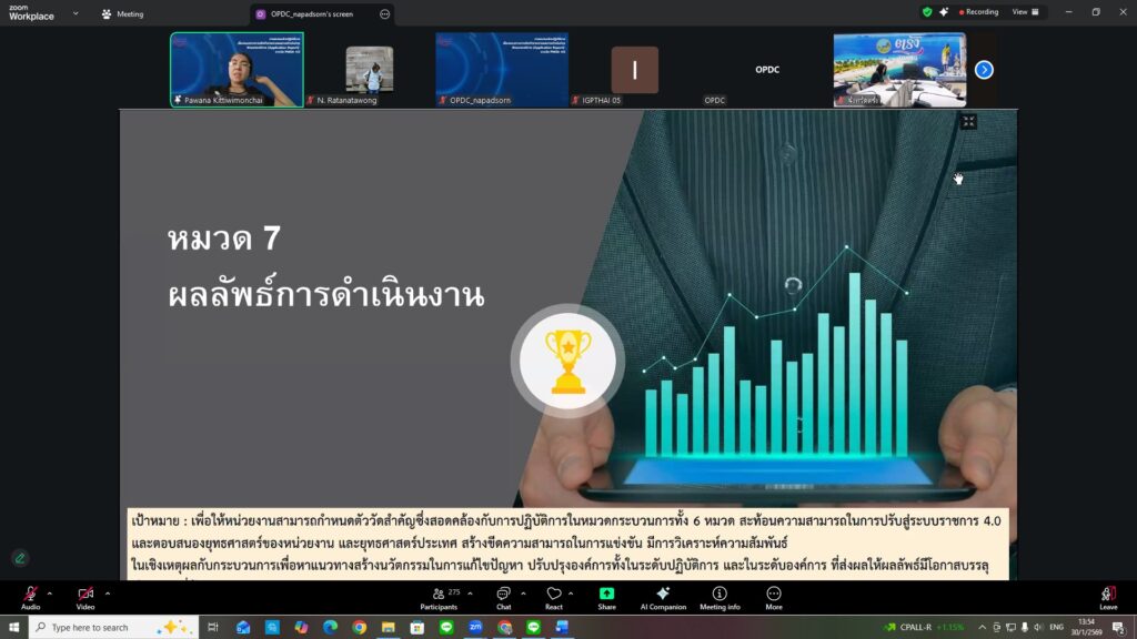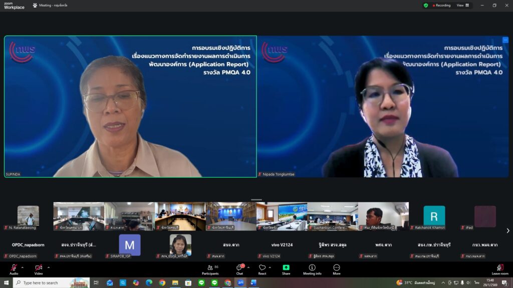 ระหว่างวันที่ 29 – 30 มกราคม 2569 นายวิษณุ คำพินิจ เกษตรจังหวัดตาก มอบหมายให้ นางสาวนฤมล รัตนทะวงค์ นักวิชาการส่งเสริมการเกษตรชำนาญการ กลุ่มยุทธศาสตร์และสารสนเทศ เข้าร่วมอบรมเชิงปฏิบัติการ เรื่องแนวทางการจัดทำรายงานผลการดำเนินการพัฒนาองค์การ (Application Report) รางวัลคุณภาพการบริหารจัดการภาครัฐ (PMQA) ประจำปี 2569 ผ่านสื่ออิเล็กทรอนิกส์ (Zoom Meeting) จัดโดย สํานักงาน ก.พ.ร.