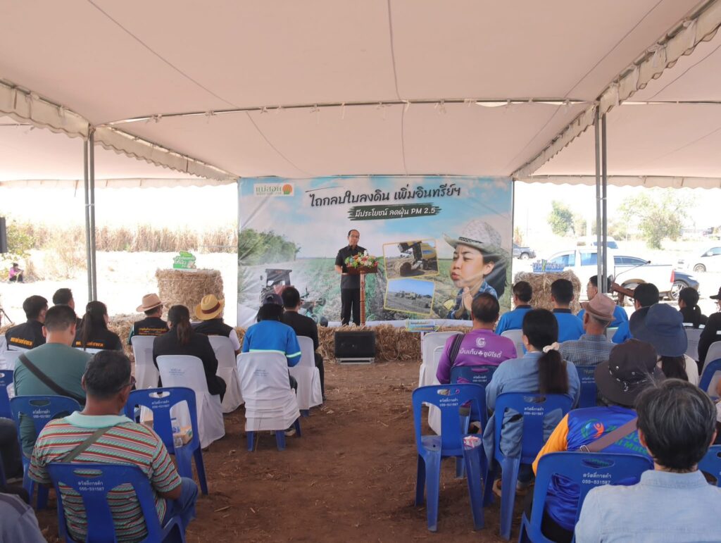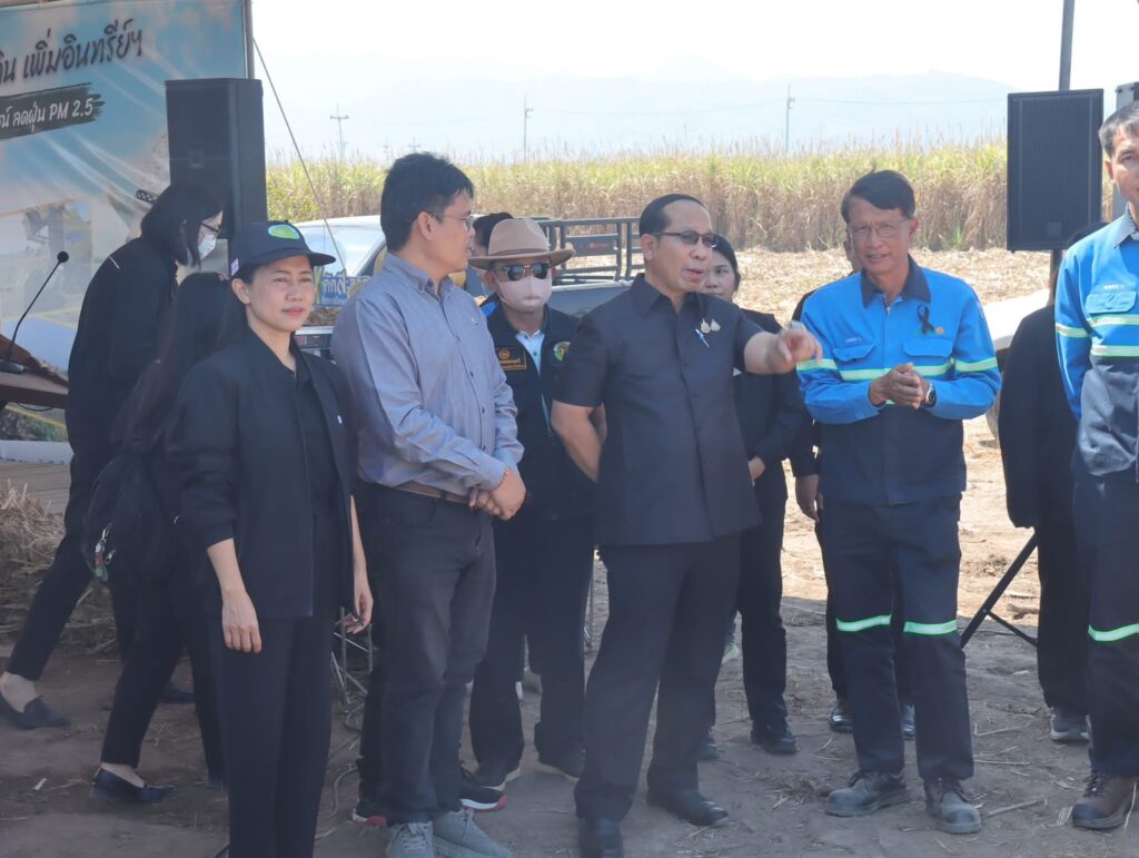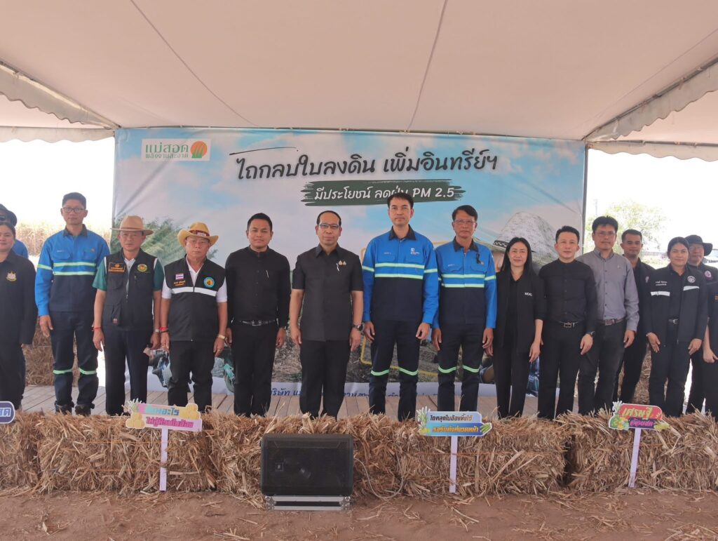 วันที่ 4 กุมภาพันธ์ 2569 เวลา 11.30 นายวิษณุ คำพินิจ เกษตรจังหวัดตาก ร่วมเยี่ยมชมการดำเนินงานของสถานประกอบการ พร้อมชมการสธิต ไถกลบใบลงดิน เพิ่มอินทรีย์ฯ ณ บริษัทแม่สอดพลังงานสะอาด จำกัด ตำบลแม่ตาว อำเภอแม่สอด จังหวัดตาก โดยมีนายชูศักดิ์ รู้ยิ่ง ผู้ว่าราชการจังหวัดตาก เป็นประธานเยี่ยมชม พร้อมด้วย ผู้อำนวยการฝ่ายไร่ คณะตัวแทนบริษัท แม่สอดพลังงานสะอาด จำกัด และ หน่วยงานราชการ เเละชาวไร่อ้อย เข้าร่วมกิจกรรม