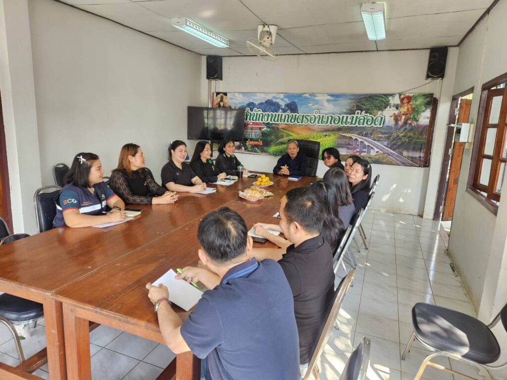 วันที่ 11 กุมภาพันธ์ 2569 นายวิษณุ คำพินิจ เกษตรจังหวัดตาก มอบหมายให้ นายพันธุ์เสน่ห์ เปรมสัย หัวหน้ากลุ่มยุทธศาสตร์และสารสนเทศ ประธานคณะทำงานชุดที่ 4 พร้อมด้วยเจ้าหน้าที่สำนักงานเกษตรจังหวัดตาก คณะทำงานนิเทศงานตามระบบส่งเสริมการเกษตร ดำเนินการนิเทศงานตามระบบส่งเสริมการเกษตร (Traning and Visit System) ณ ห้องประชุมสำนักงานเกษตรอำเภอแม่สอด เพื่อติดตามผลการดำเนินงานโครงการตามระบบส่งเสริมการเกษตร ประจำปีงบประมาณ พ.ศ. 2569 รวมถึงแลกเปลี่ยนเรียนรู้เกี่ยวกับปัญหา อุปสรรค และข้อเสนอแนะ เพื่อนำมาขับเคลื่อนการดำเนินงานต่อไป