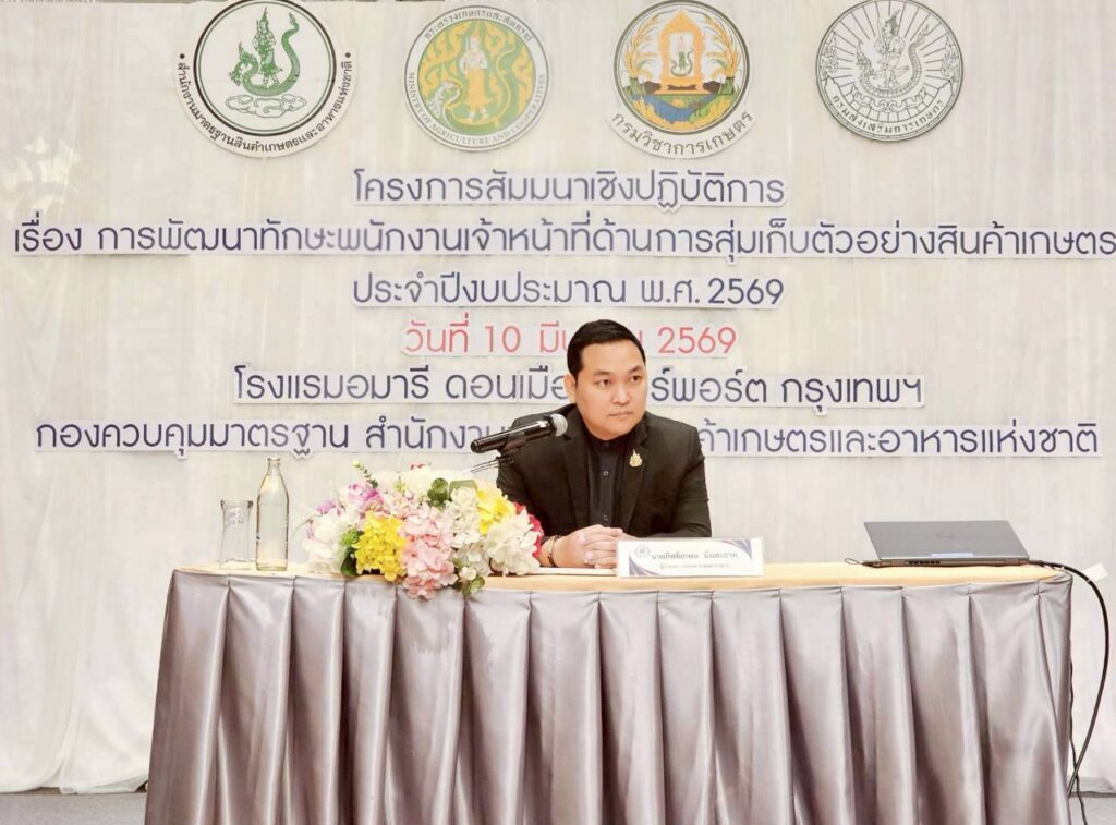 ระหว่างวันที่ 9 – 10 มีนาคม 2569 นายวิษณุ คำพินิจ เกษตรจังหวัดตาก มอบหมายให้ นางสาวอาทิตยา อินต๊ะ นักวิชาการส่งเสริมการเกษตรชำนาญการ กลุ่มอารักขาพืช เข้าร่วมโครงการสัมมนาเชิงปฏิบัติการ เรื่อง การพัฒนาทักษะพนักงานเจ้าหน้าที่ด้านการสุ่มเก็บตัวอย่างสินค้าเกษตร ประจำปีงบประมาณ พ.ศ. 2569 ณ โรงแรมอมารีดอนเมืองแอร์พอร์ต กรุงเทพมหานคร