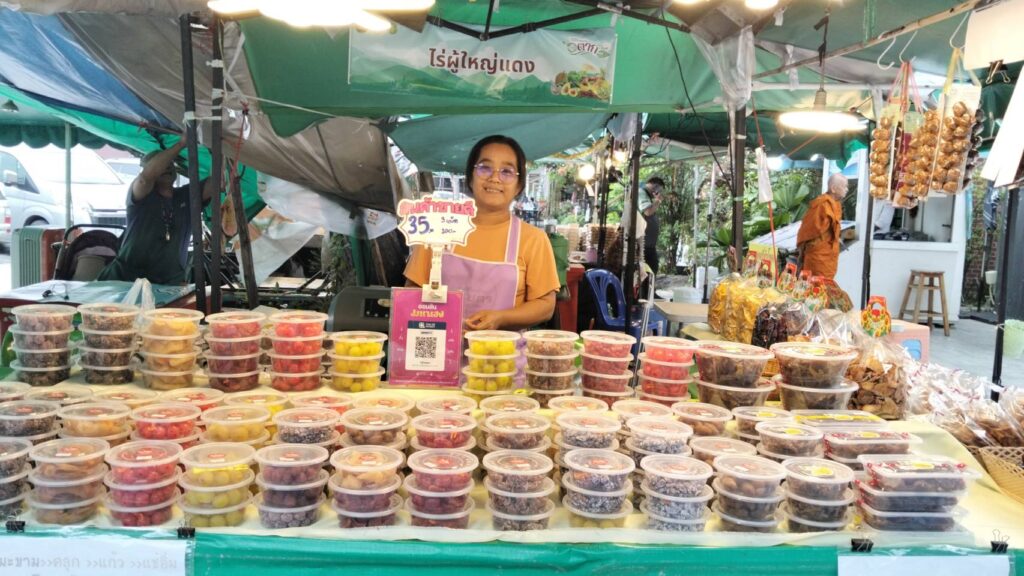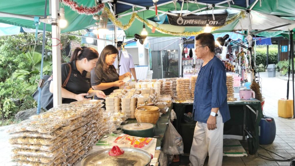 วันที่ 13 มีนาคม 2569 นายวิษณุ คำพินิจ เกษตรจังหวัดตาก มอบหมายให้ นางนิตยา แก้วสุข หัวหน้ากลุ่มส่งเสริมและพัฒนาเกษตรกร และเจ้าหน้าที่กลุ่มส่งเสริมและพัฒนาเกษตรกร ลงพื้นที่ติดตามการดำเนินงานประเมินสถานการณ์ตลาดสินค้าเกษตรและ ให้กำลังใจตลาดเกษตรกรจังหวัดตาก (ปตท.ไม้งาม) เปิดขายทุกวันศุกร์ -วันจันทร์ เวลา 10.00 น. – 18.00 น. ในช่วงนี้ได้รับการตอบรับที่ดีมีลูกค้ามาจับจ่ายซื้อของเป็นของฝาก