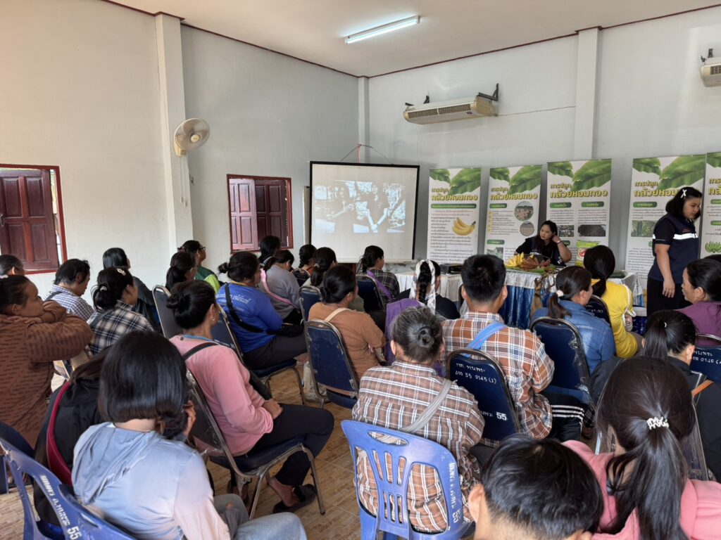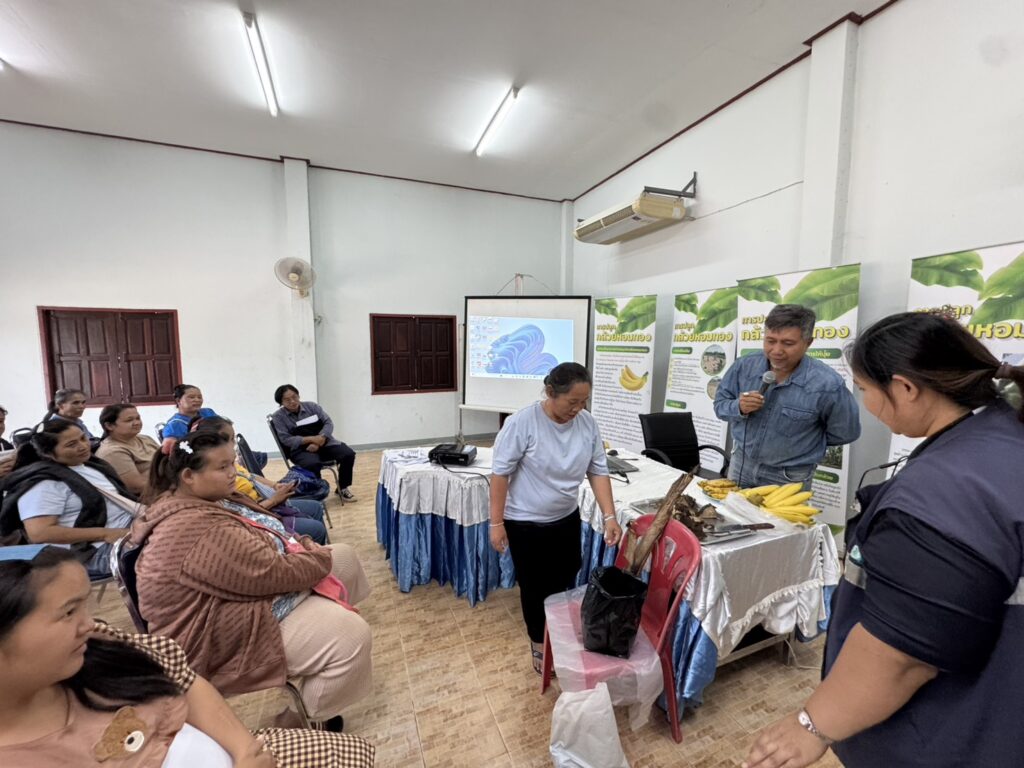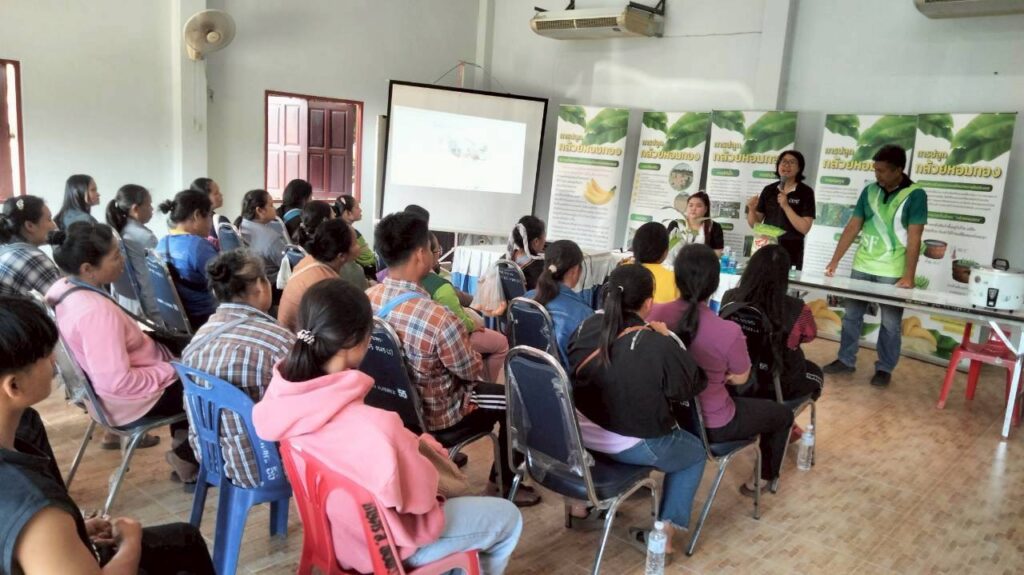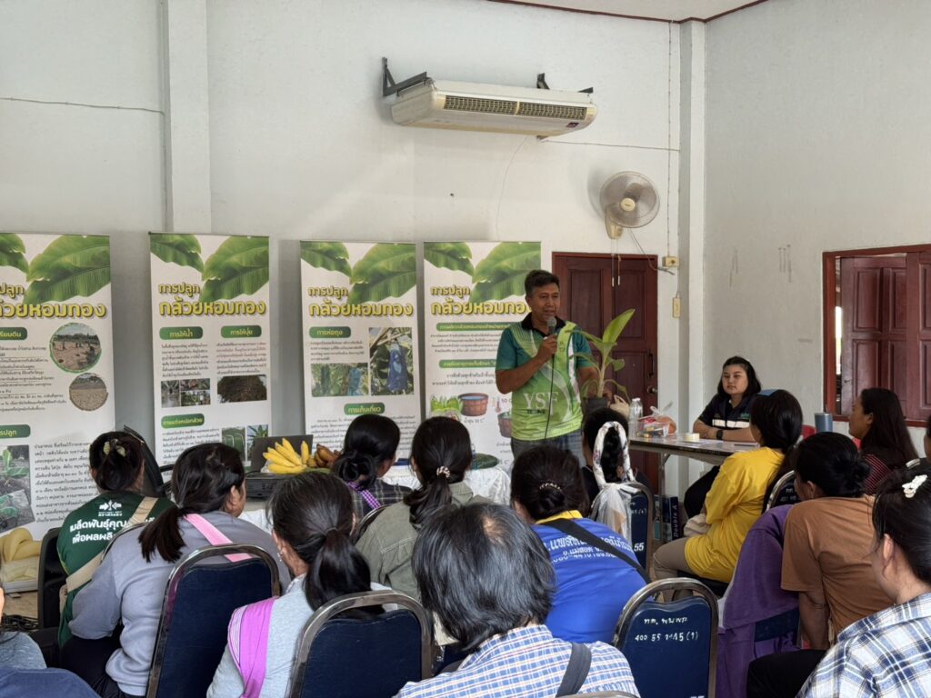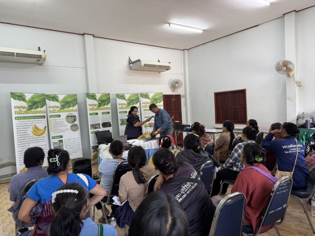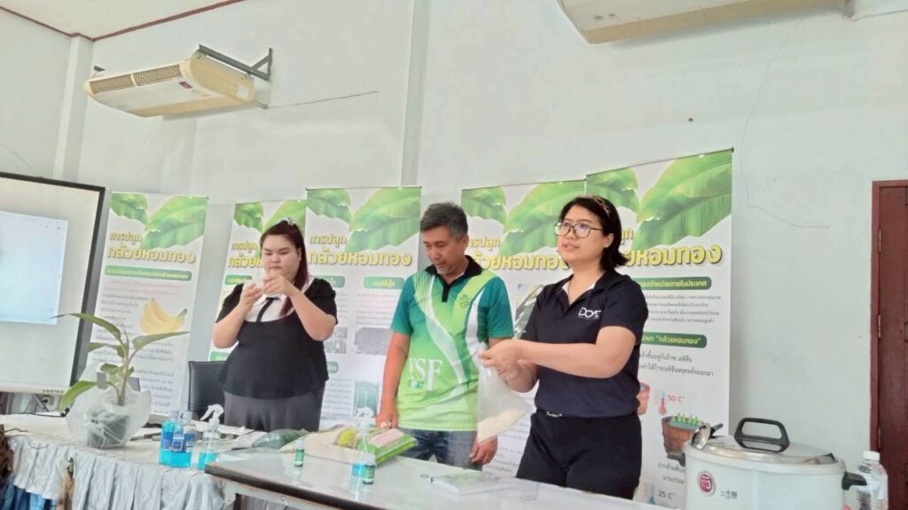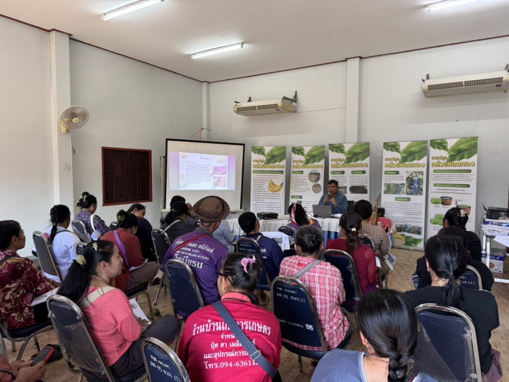 ซึ่งหลักสูตรประกอบด้วยการบรรยายเกี่ยวกับเทคโนโลยีการผลิตและการดูแลกล้วยหอมทอง เทคโนโลยีหลังการเก็บเกี่ยวกล้วยหอมทอง การผลิตกล้วยหอมทองให้ได้มาตราฐาน การใช้สารชีวภัณฑ์ในการผลิตกล้วยหอมทอง และการฝึกปฏิบัติการผลิตและการใช้สารชีวภัณฑ์ในการควบคุมโรคและศัตรูกล้วยหอมทอง โดยการจัดอบรมในครั้งนี้ มีวัตถุประสงค์เพื่อให้เกษตรกรมีความรู้ ความเข้าใจในการปลูกกล้วยหอมทอง การดูแลรักษา ตลอดจนถึงการดูแลรักษาหลังการเก็บเกี่ยวกล้วยหอมทอง โดยได้รับความสนใจจากเกษตรกร
