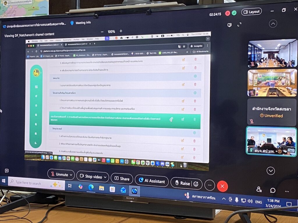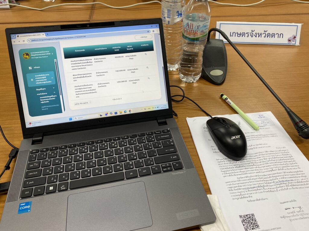 วันที่ 24 มีนาคม 2569 นายวิษณุ คำพินิจ เกษตรจังหวัดตาก มอบหมายให้ นางสาวนฤมล รัตนทะวงค์ นักวิชาการส่งเสริมการเกษตรชำนาญการ กลุ่มยุทธศาสตร์และสารสนเทศ เข้าร่วมการประชุมซักซ้อมและทบทวนการใช้งานระบบสนับสนุนการจัดทำและบันทึกข้อมูลแผนงาน/โครงการ และการติดตามผลการดำเนินงานตามแผนงาน/โครงการของจังหวัดและกลุ่มจังหวัด ภายใต้ระบบแพลตฟอร์มข้อมูลกระทรวงมหาดไทย (MOI Single Data Platform) ณ ห้องประชุมสื่อสาร ชั้น 4 ศาลากลางจังหวัดตาก ผ่านสื่ออิเล็กทรอนิกส์ (Webex Meeting) จากกระทรวงมหาดไทย