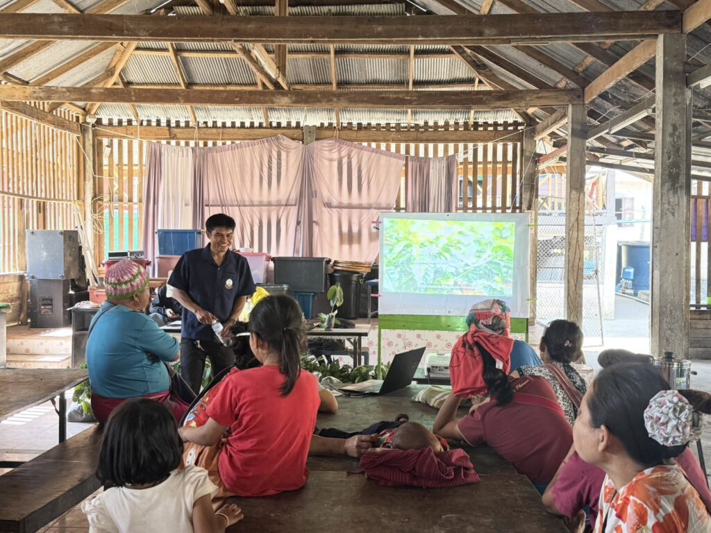 ระหว่างวันที่ 26 – 27 มีนาคม 2569 นายวิษณุ คำพินิจ เกษตรจังหวัดตาก มอบหมายให้เจ้าหน้าที่กลุ่มยุทธศาสตร์และสารสนเทศ และเจ้าหน้าที่สำนักงานเกษตรอำเภอแม่ระมาด จัดกระบวนการเรียนรู้เทคโนโลยีการดูแลและการเก็บเกี่ยว (กาแฟ) โครงการส่งเสริมและพัฒนากลุ่มเกษตรกรแปลงใหญ่ในพื้นที่จังหวัดตาก กิจกรรมพัฒนาศักยภาพเกษตรกรแปลงใหญ่ในพื้นที่จังหวัดตาก ตามแผนปฏิบัติราชการประจำปีของจังหวัดตาก ประจำปีงบประมาณ พ.ศ. 2569 ณ โรงเรียนบ้านห้วยโป่ง ตำบลแม่ตื่น อำเภอแม่ระมาด จังหวัดตาก โดยมีเกษตรกรผู้ปลูกกาแฟและผู้สนใจปลูกกาแฟ จำนวน 20 ราย เข้าร่วมอบรม