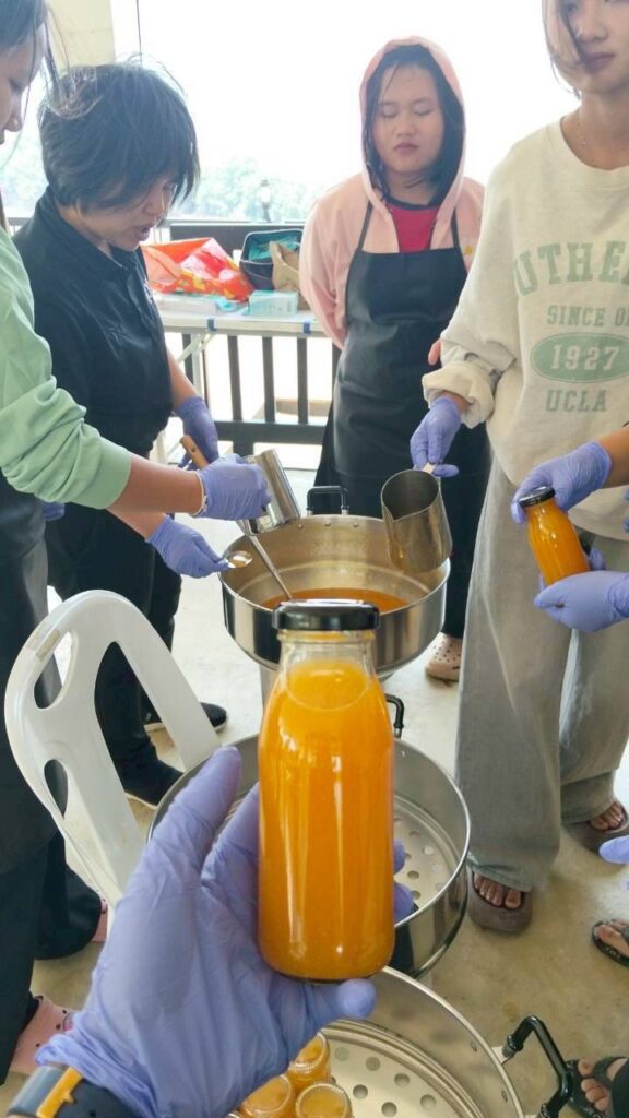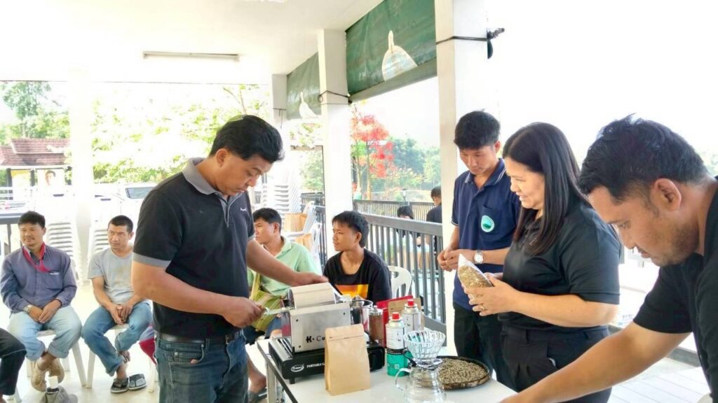 ระหว่างวันที่ 2 – 3 เมษายน 2569 นายวิษณุ คำพินิจ เกษตรจังหวัดตาก มอบหมายให้นางนิตยา แก้วสุข หัวหน้ากลุ่มส่งเสริมและพัฒนาเกษตรกร พร้อมด้วยเจ้าหน้าที่กลุ่มส่งเสริมและพัฒนาเกษตรกร และเจ้าหน้าที่สำนักงานเกษตรอำเภอแม่ระมาด จัดกิจกรรมฝึกอบรมการพัฒนาการแปรรูปกาแฟ การแปรรูปผักผลไม้ และการย้อมผ้าจากสีธรรมชาติ โครงการส่งเสริมการแปรรูปและการตลาดสินค้าเกษตรพื้นที่สูง กิจกรรมส่งเสริมการเพิ่มประสิทธิภาพการผลิตสินค้าเกษตรพื้นที่สูงและการตลาดโครงการหลวงเลอตอจังหวัดตาก