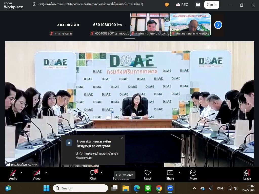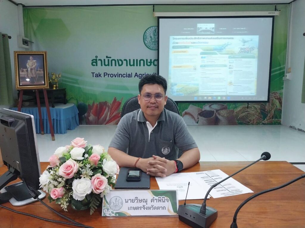 วันที่ 7 เมษายน 2569 เวลา 09.00 น. นายวิษณุ คำพินิจ เกษตรจังหวัดตาก พร้อมด้วย นางนิตยา แก้วสุข หัวหน้ากลุ่มส่งเสริมและพัฒนาเกษตรกร และเจ้าหน้าที่สำนักงานเกษตรจังหวัดตาก เข้าร่วมการประชุมชี้แจงโครงการเพิ่มประสิทธิภาพงานส่งเสริมการเกษตรด้วยเทคโนโลยีและนวัตกรรม โดยมี นางอัญชลี สุวจิตตานนท์ อธิบดีกรมส่งเสริมการเกษตร เป็นประธานการประชุม