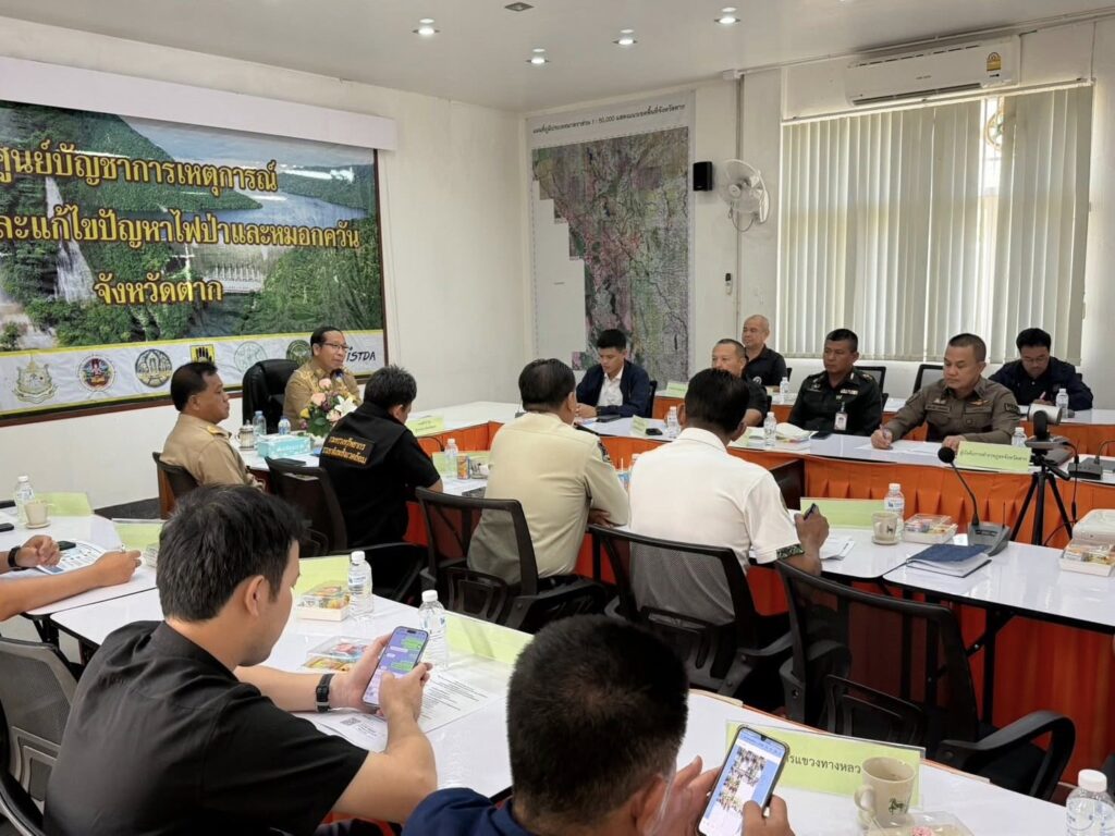 โดยที่ประชุมรับทราบรายงานผลการดำเนินงานแก้ไขปัญหาไฟป่าและฝุ่นละอองในพื้นที่ต่าง ๆ พร้อมทั้งติดตามการแก้ไขปัญหาในระดับอำเภอที่มีจุดความร้อนสะสม (Hotspots) สูง โอกาสนี้ ผู้ว่าราชการจังหวัดตาก ได้ถอดบทเรียนการดำเนินงานที่ผ่านมา และเน้นย้ำการบังคับใช้กฎหมายอย่างจริงจัง หากพบการกระทำผิด ให้ดำเนินการตามกฎหมายโดยเคร่งครัด เพื่อสร้างมาตรฐานเดียวกันทั้งจังหวัด และลดพฤติกรรมการเผาในพื้นที่ พร้อมทั้งกล่าวให้กำลังเจ้าหน้าที่ผู้ปฏิบัติงาน