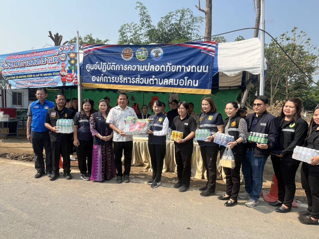 วันที่ 13 เมษายน 2569 เวลา 08.30 น. นายวิษณุ คำพินิจ เกษตรจังหวัดตาก มอบหมายให้ นางนิตยา แก้วสุข หัวหน้ากลุ่มส่งเสริมและพัฒนาเกษตรกร ร่วมลงพื้นที่ตรวจเยี่ยมจุดหลักและจุดบริการประชาชนในช่วงเทศกาลสงกรานต์ ปี 2569 โดยมีนางสุนีย์ บุษพันธ์ รองผู้ว่าราชการจังหวัดตาก หัวหน้าคณะ นำทีมหัวหน้าส่วนราชการผู้แทนหน่วยงาน เข้าร่วมตรวจเยี่ยมให้กำลังใจ มอบสิ่งของและน้ำดื่มแก่คณะเจ้าหน้าที่ผู้ปฏิบัติงานประจำด่านตรวจต่างๆ ประกอบด้วย