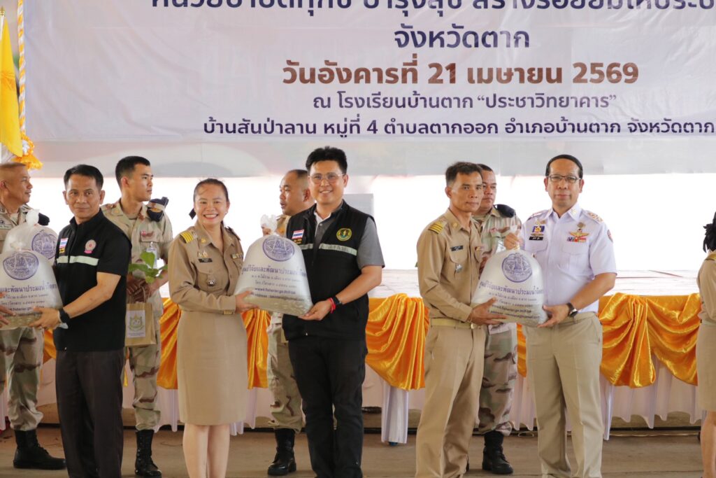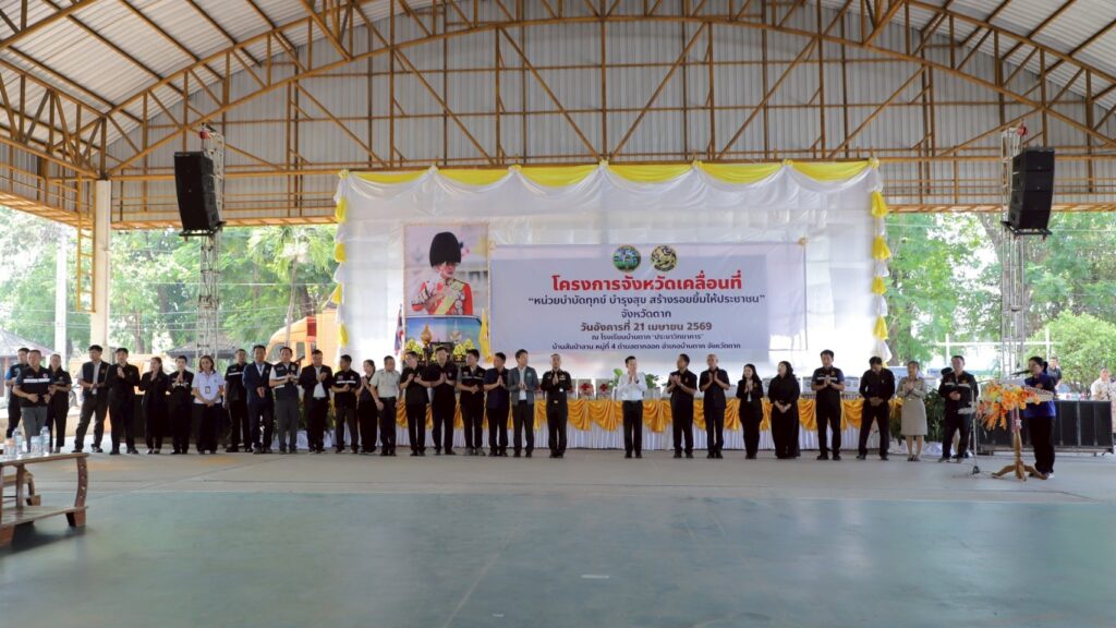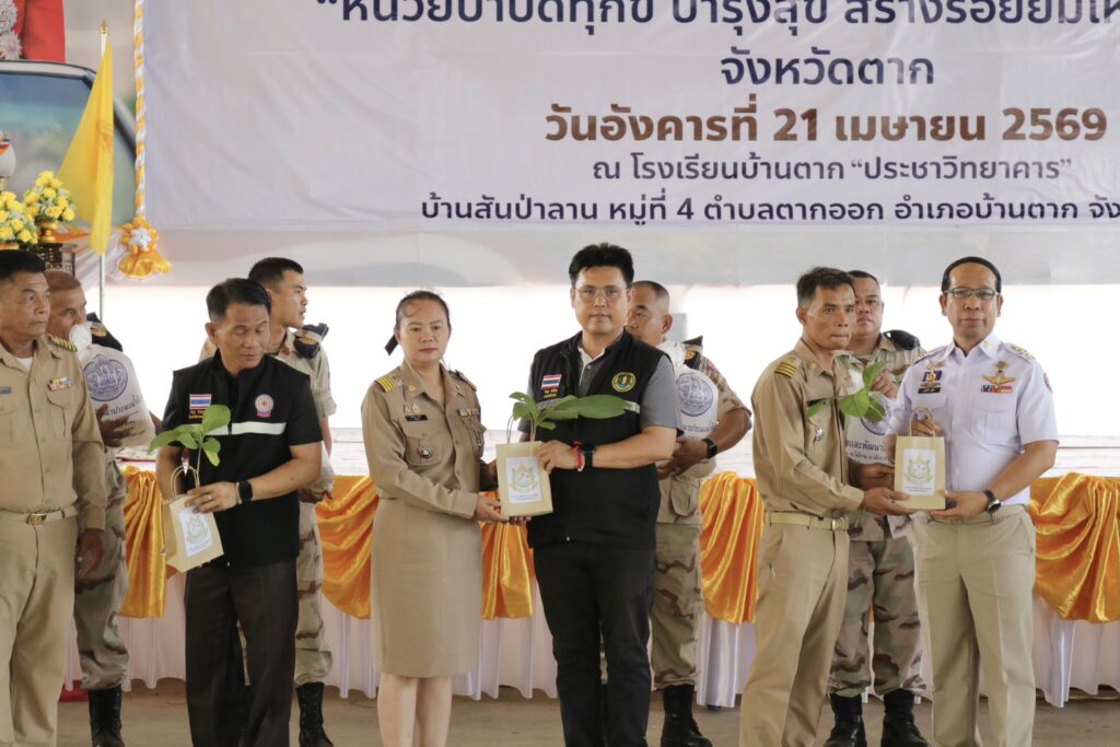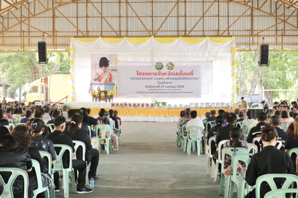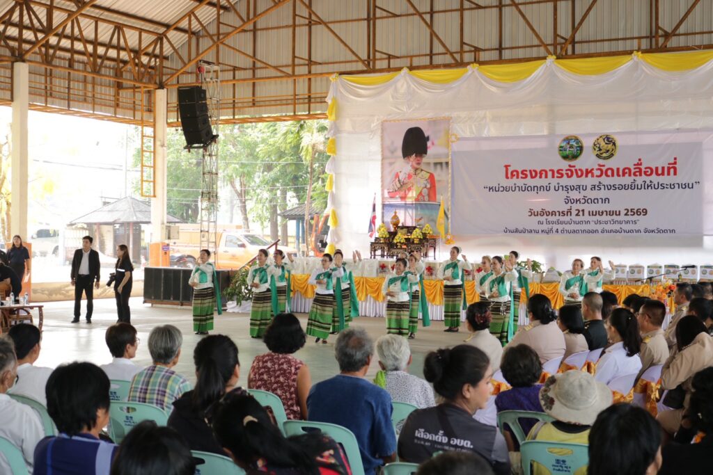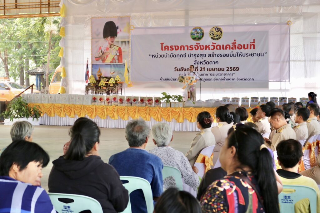 วันที่ 21 เมษายน 2569 เวลา 9.30 น. นายวิษณุ คำพินิจ เกษตรจังหวัดตาก พร้อมด้วย นายพันธุ์เสน่ห์ เปรมสัย หัวหน้ากลุ่มยุทธศาสตร์และสารสนเทศ นางรพี เตชะสอน เกษตรอำเภอบ้านตาก เจ้าหน้าที่กลุ่มยุทธศาสตร์และสารสนเทศ และเจ้าหน้าที่สำนักงานเกษตรอำเภอบ้านตาก เข้าร่วมโครงการจังหวัดเคลื่อนที่ หน่วยบำบัดทุกข์ บำรุงสุข สร้างรอยยิ้มให้ประชาชนจังหวัดตาก ประจำปีงบประมาณ พ.ศ 2569 ประจำเดือนเมษายน 2569 ณ โรงเรียนบ้านตากประชาวิทยาคาร อำเภอบ้านตาก จังหวัดตาก โดยมี นายชูศักดิ์ รู้ยิ่ง ผู้ว่าราชการจังหวัดตาก เป็นประธานเปิดโครงการ พร้อมด้วย รองผู้ว่าราชการจังหวัดตาก ทหาร ตำรวจ นายกเหล่ากาชาดจังหวัดตาก หัวหน้าส่วนราชการ หน่วยงานรัฐวิสาหกิจ ข้าราชการ องค์กรปกครองส่วนท้องถิ่น กำนัน ผู้ใหญ่บ้าน และประชาชนในพื้นที่ เข้าร่วมกิจกรรม