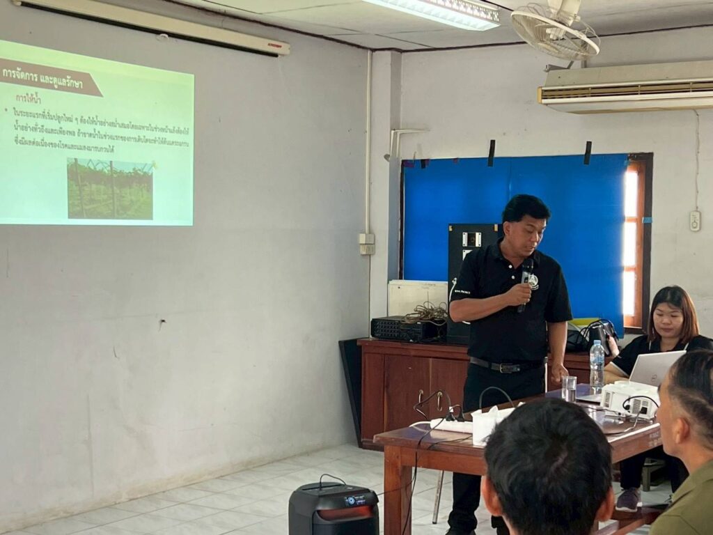 ระหว่างวันที่ 23 – 24 เมษายน 2569 นายวิษณุ คำพินิจ เกษตรจังหวัดตาก มอบหมายให้นายสมาน เทพารักษ์ หัวหน้ากลุ่มอารักขาพืช พร้อมด้วย เจ้าหน้าที่กลุ่มอารักขาพืช และเจ้าหน้าที่สำนักงานเกษตรอำเภอแม่สอด จัดกระบวนการเรียนรู้เทคโนโลยีการดูแลและการเก็บเกี่ยว (เสาวรส) โครงการส่งเสริมและพัฒนากลุ่มเกษตรกรแปลงใหญ่ในพื้นที่จังหวัดตาก กิจกรรมพัฒนาศักยภาพเกษตรกรแปลงใหญ่ในพื้นที่จังหวัดตาก ตามแผนปฏิบัติราชการประจำปีของจังหวัดตาก ประจำปีงบประมาณ พ.ศ. 2569 ณ สำนักงานเกษตรอำเภอแม่สอด ตำบลแม่สอด อำเภอแม่สอด จังหวัดตาก โดยมีเกษตรกรผู้สนใจเข้าร่วม จำนวน 40 ราย