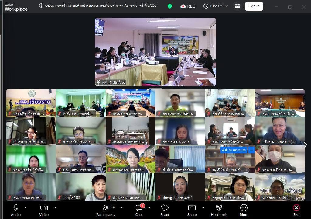 วันที่ 23 เมษายน 2569 นายวิษณุ คำพินิจ เกษตรจังหวัดตาก เข้าร่วมการประชุมเกษตรจังหวัดและหัวหน้าส่วนราชการระดับเขต ครั้งที่ 3/2569 ผ่านระบบออนไลน์ โดยมีนายสุริยะ คำปวง รองอธิบดีกรมส่งเสริมการเกษตร เป็นประธานการประชุม พร้อมด้วยผู้อำนวยการสำนักงานส่งเสริมและพัฒนาการเกษตรทีื 6 จังหวักเชียงใหม่ ผู้อำนวยการกลุ่ม หัวหน้าฝ่ายบริหารทั่วไป เกษตรจังหวัดทั้ง 17 จังหวัดภาคเหนือ ศูนย์ปฎิบัติการ 16 ศูนย์ เเละเจ้าหน้าที่ผู้เกี่ยวข้อง เข้าร่วมการประชุม ทั้งนี้ได้รับเกียรติจาก นางสาวปิยะรัฐชย์ ติยะไพรัช รัฐมนตรีช่วยว่าการกระทรวงเกษตรและสหกรณ์ ร่วมรับฟังผ่านระบบออนไลน์ zoom meeting